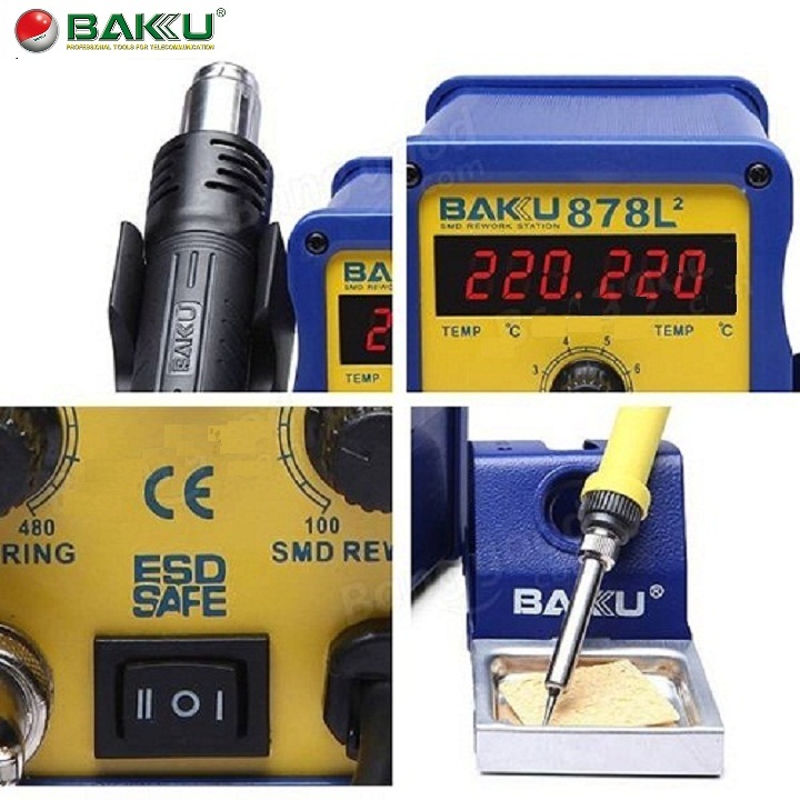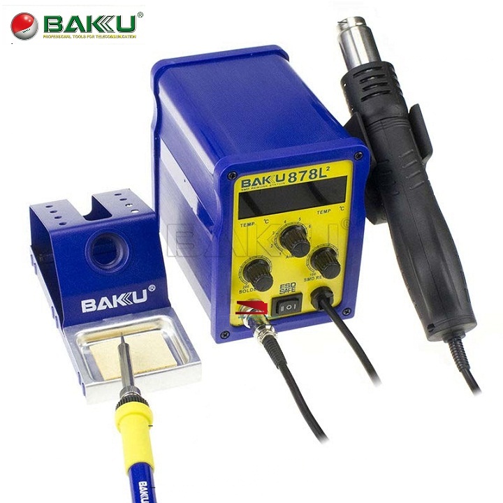 1. Máy khò và hàn BAKU-878L được thiết kế gọn gàng.  BAKU-878L nhìn rất chắc chắn, khỏe khoắn không chỉ phù hợp với môi trường sửa chữa và nhà xưởng mà còn rất thích hợp với việc đặt tại từ cửa hiệu lớn cho tới cửa hàng nhỏ